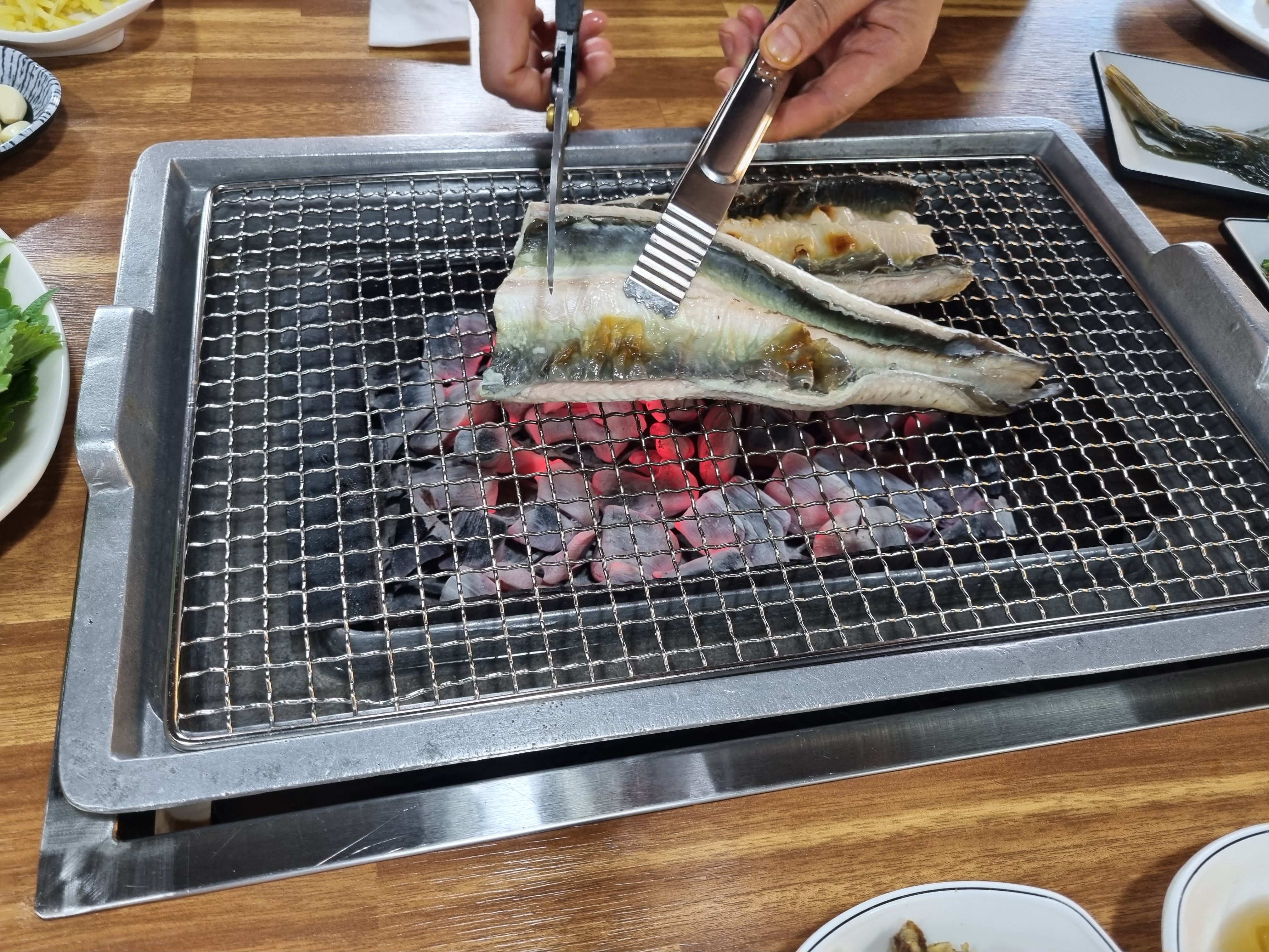 초벌된장어를 직접 잘리주십니다.