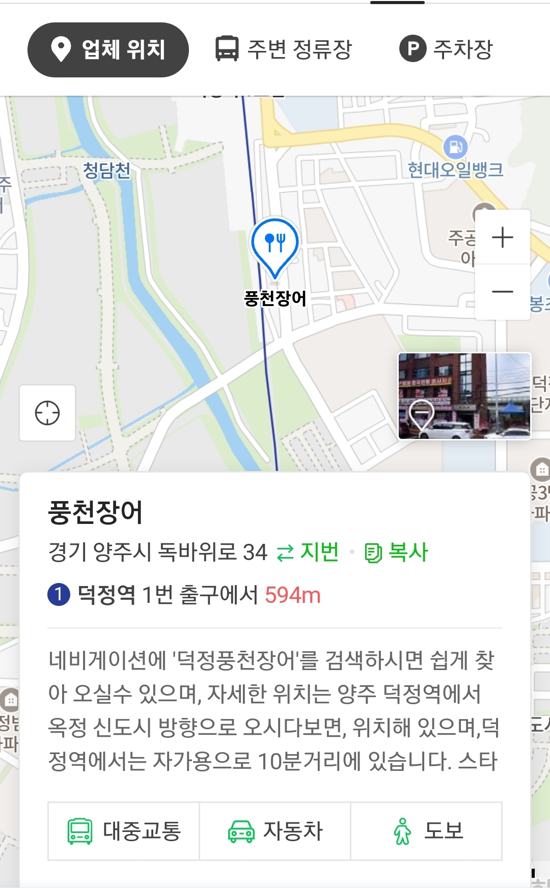위치는 덕정역에서 600미터 떨어져