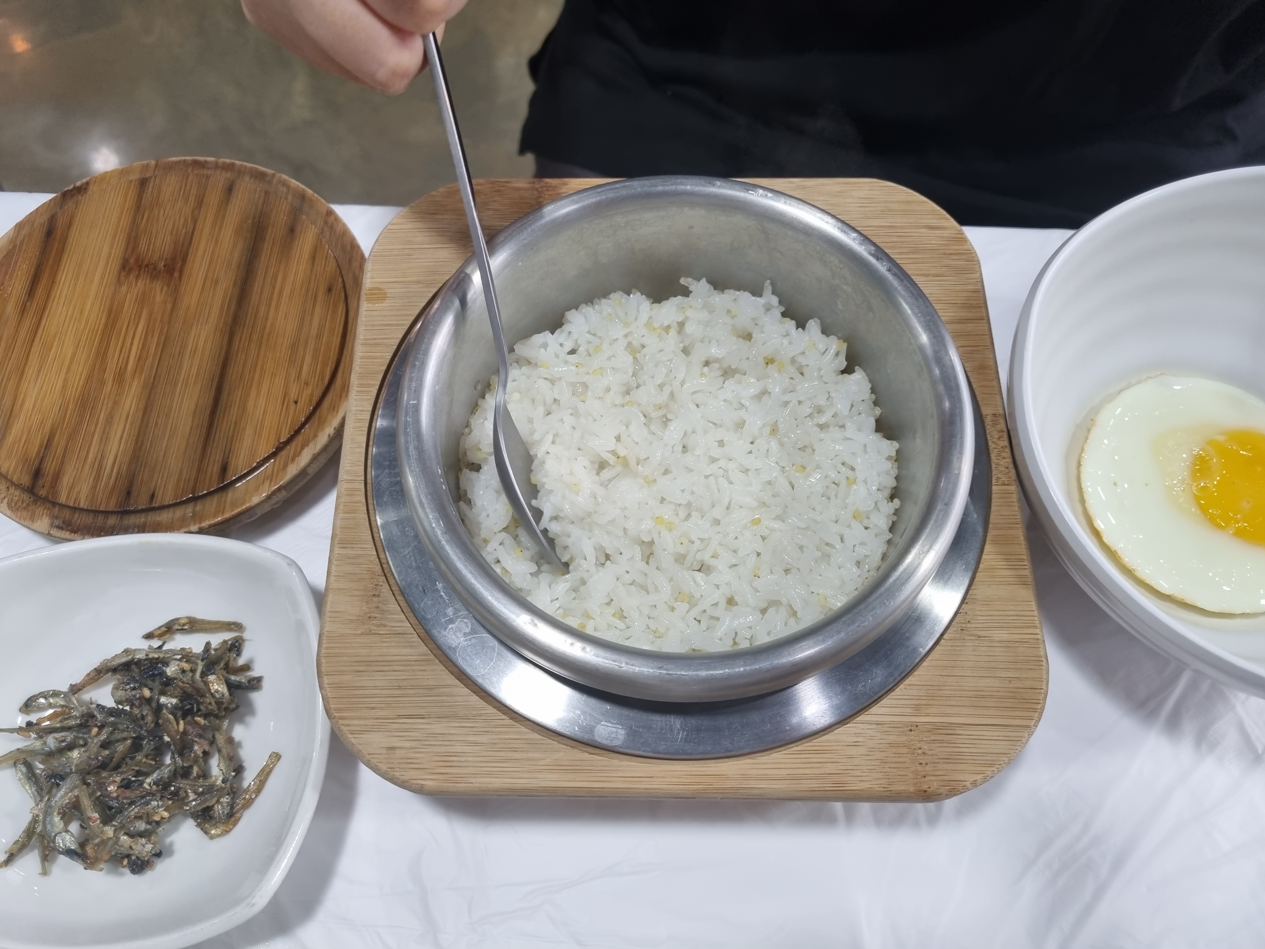 밥을 덜고 물을 부어서 숭늉을 만듭니다.