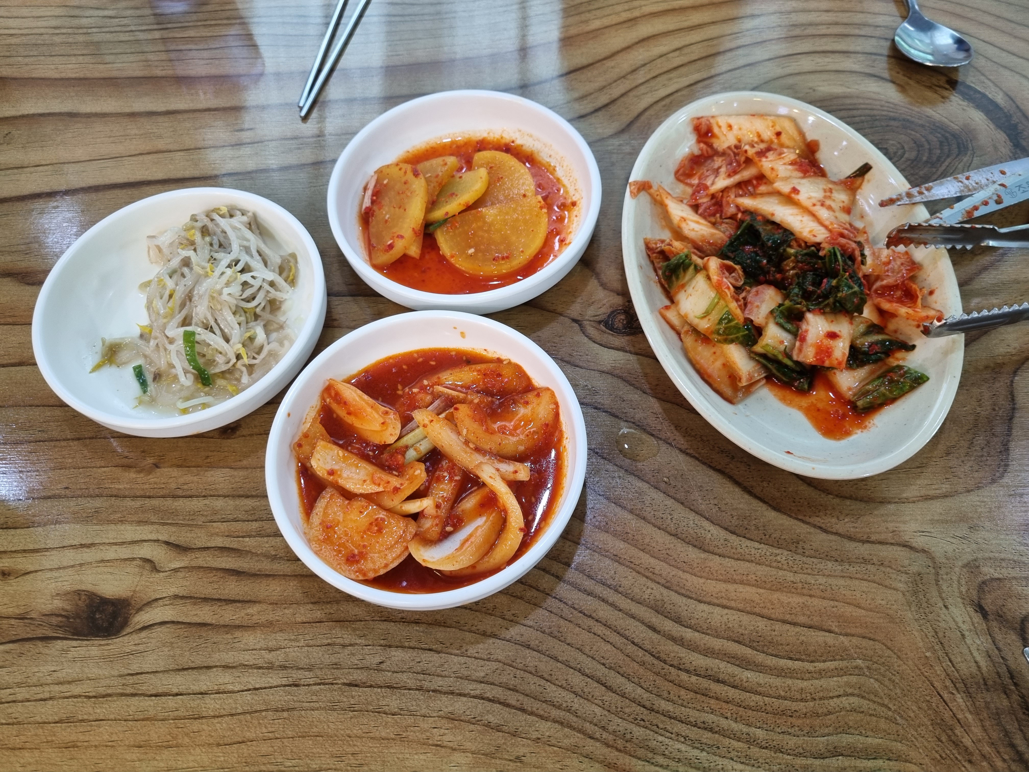 단무지 무침/숙주나물/양파김치/배추김치