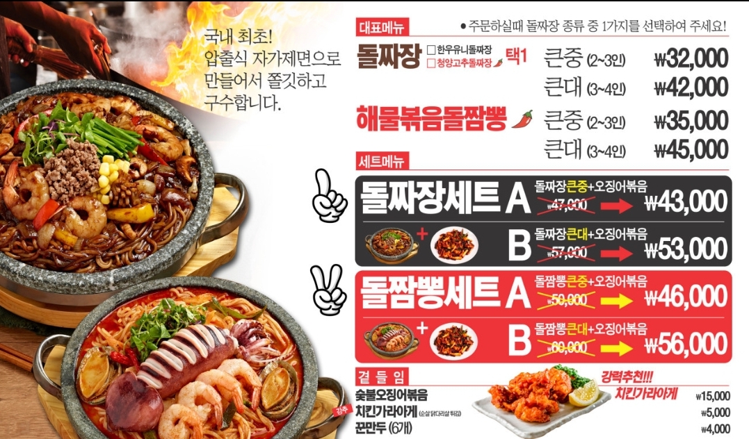 메뉴 돌짜장과 해물볶음돌짬뽕이
