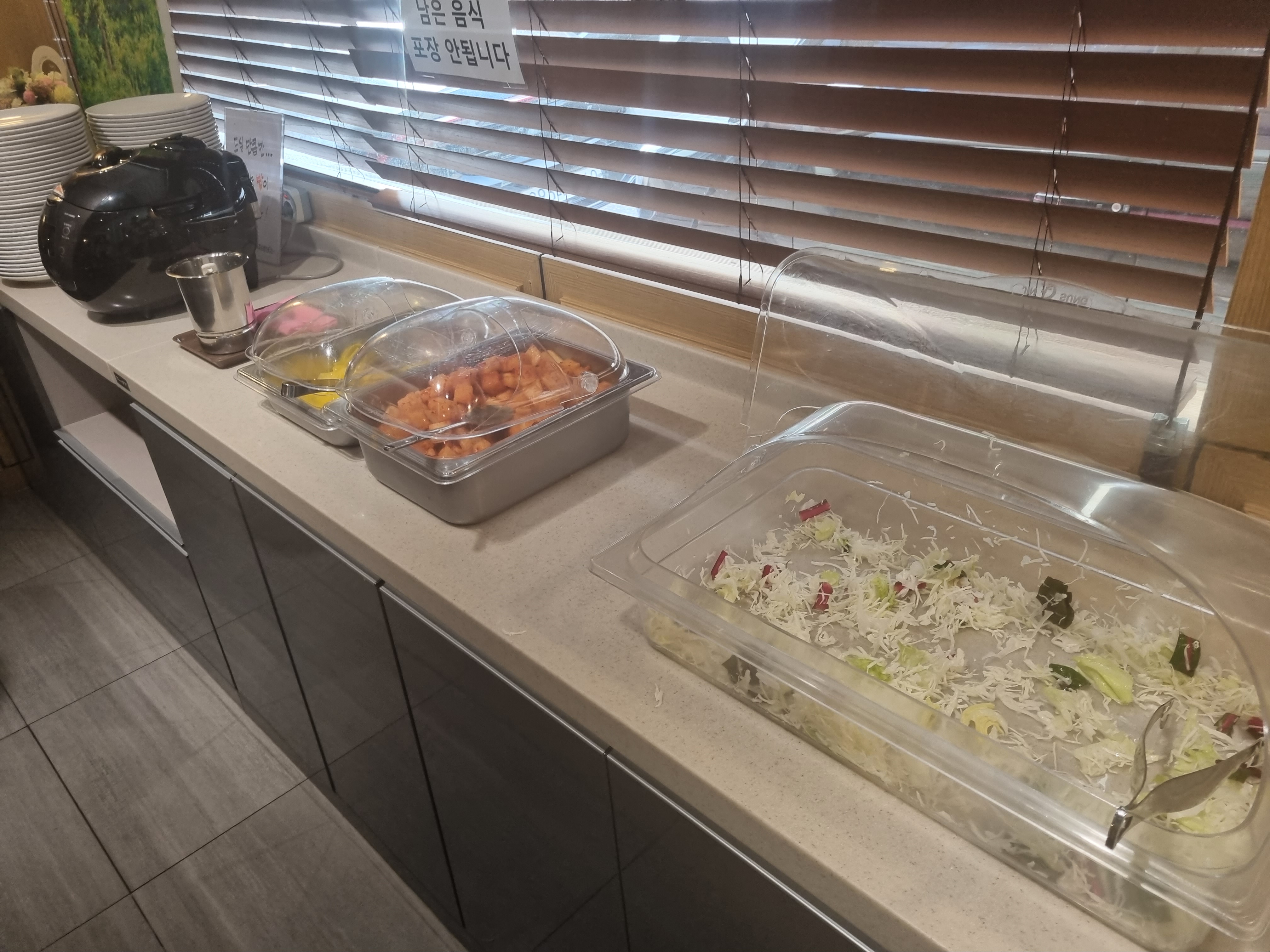 셀프 코너에가서 반찬과 밥을 퍼오시면 됩니다.