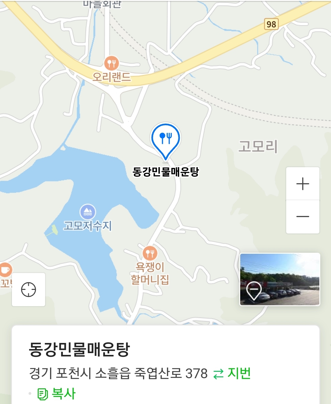 위치는 고모리저수지 초입입니다.