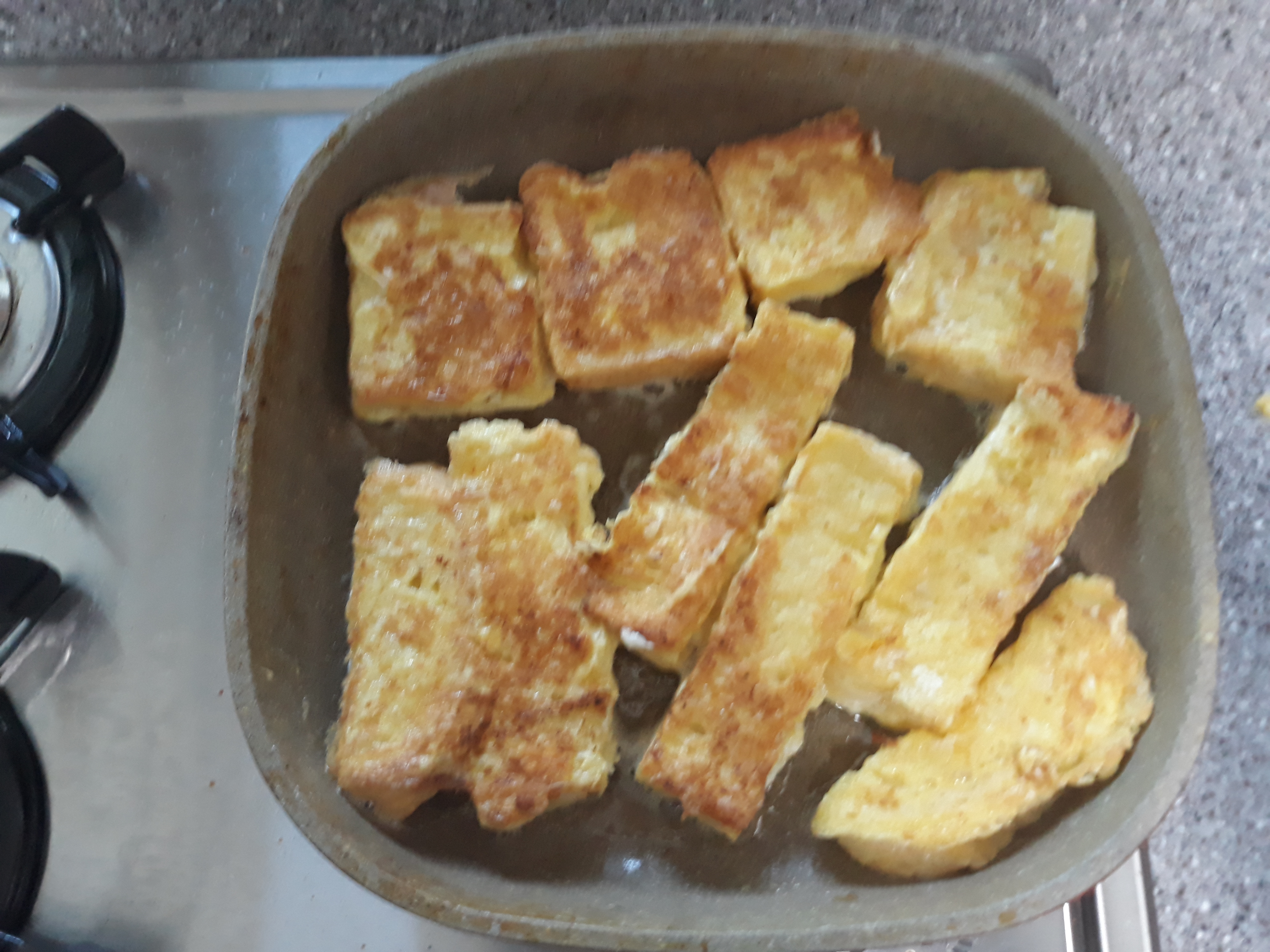 노릇노릇해지면 토스트를 뒤집어줍니다.