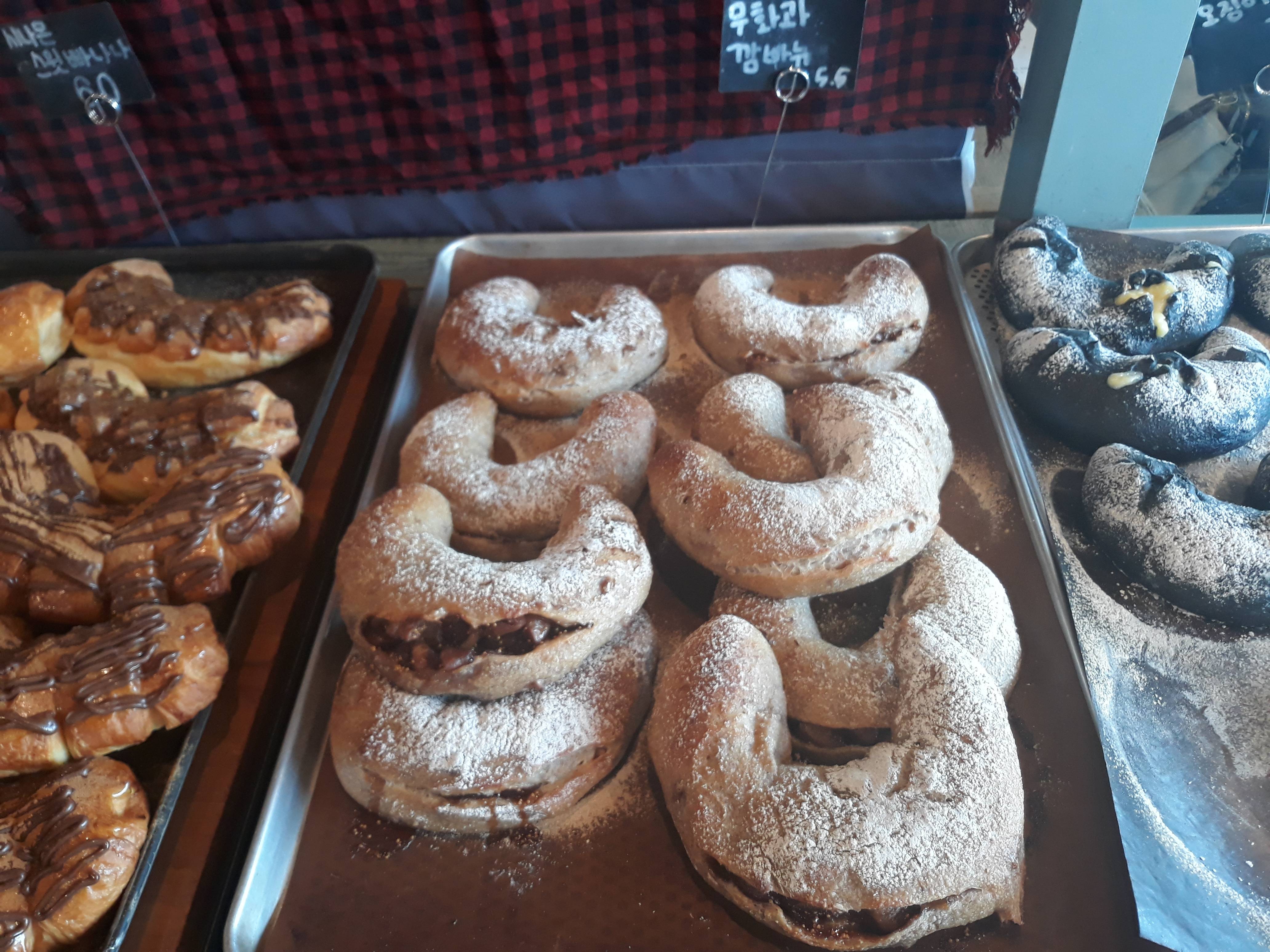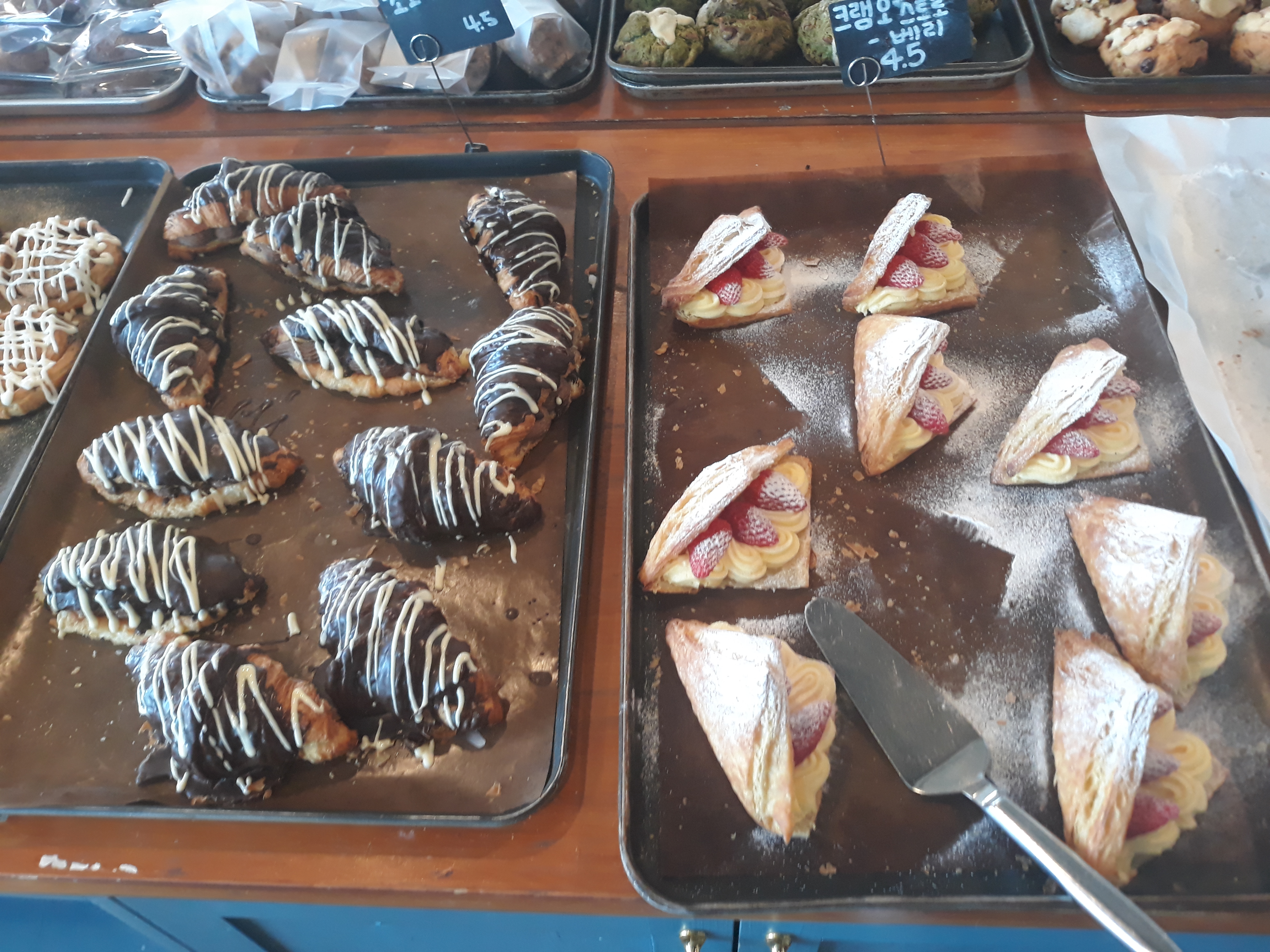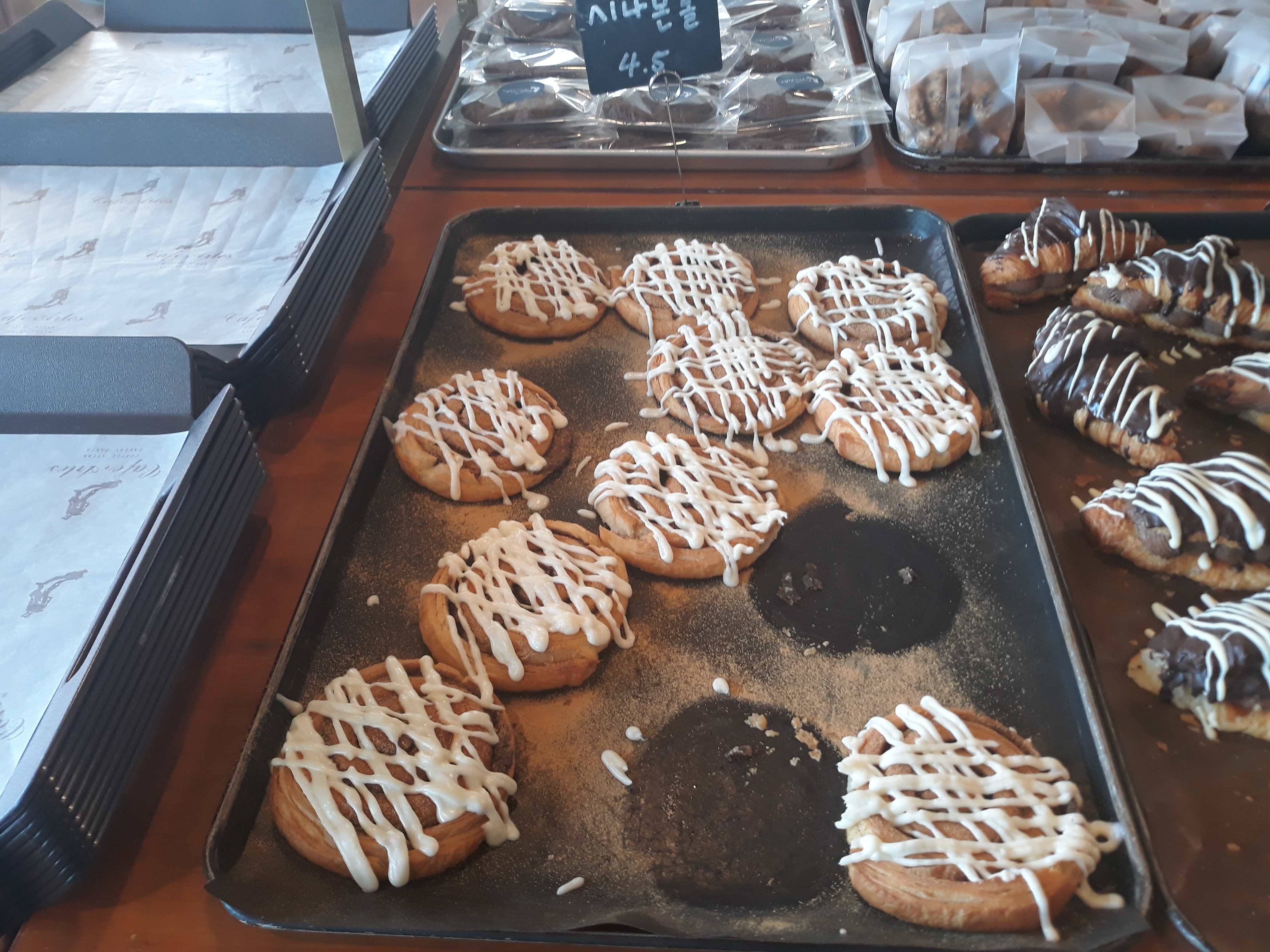 마음에 드는 빵이나 쿠키를 담아가서 음료 매대에가서 계산하는 방식입니다.