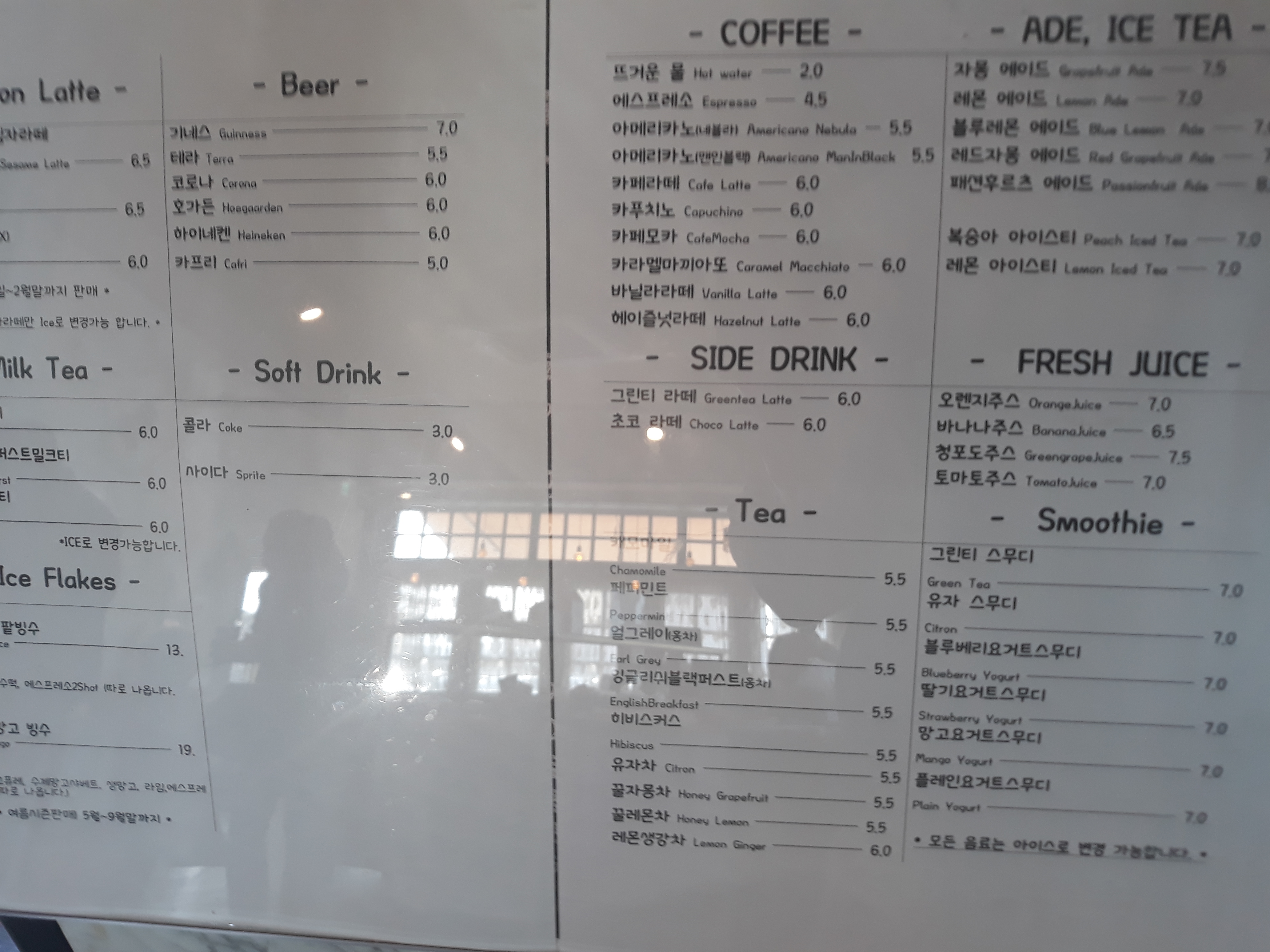 카페아를 간단한 메뉴사진입니다.(맥주도있네요 ㅎㅎ)