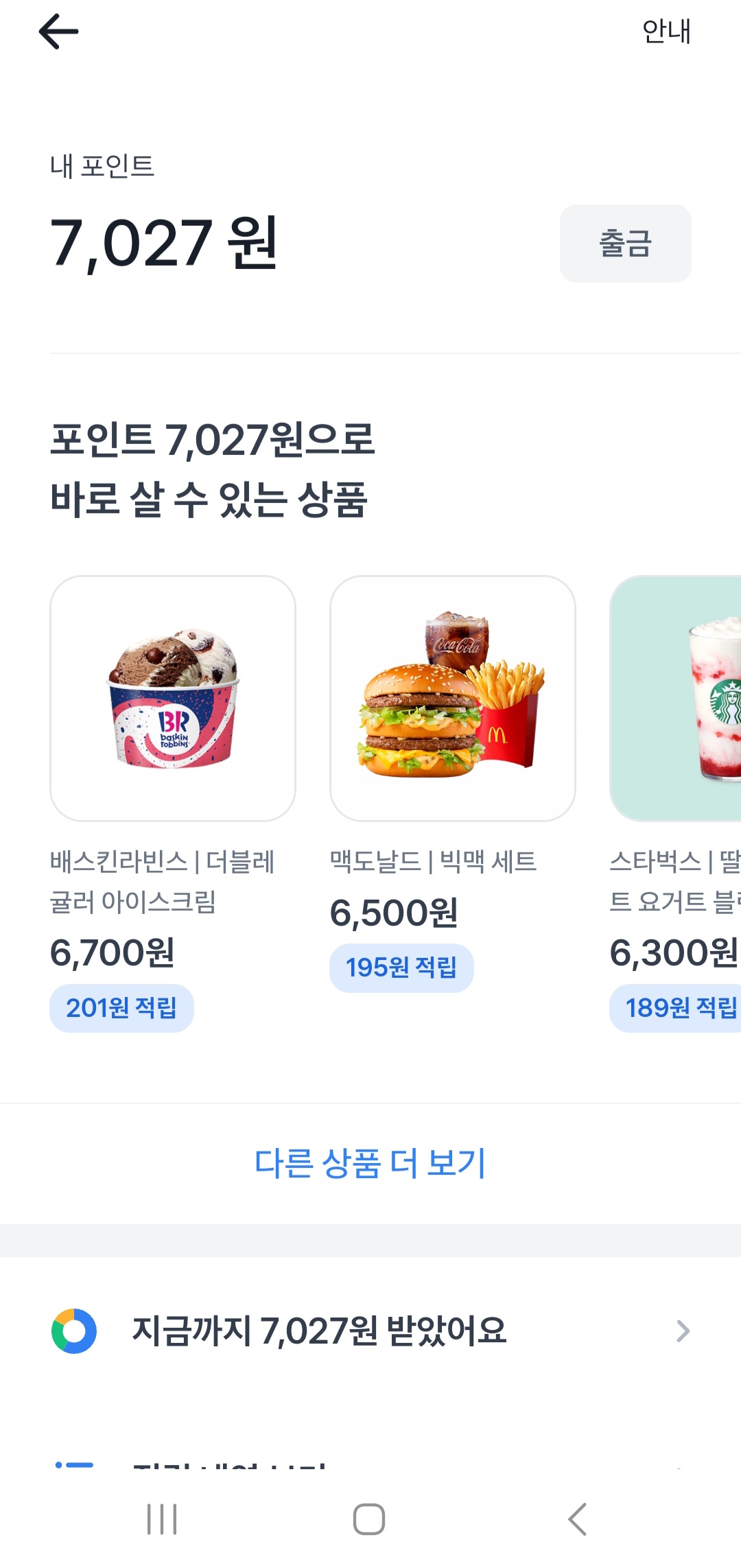 받은 포인트로 배스킨/맥도날드/스타벅스등