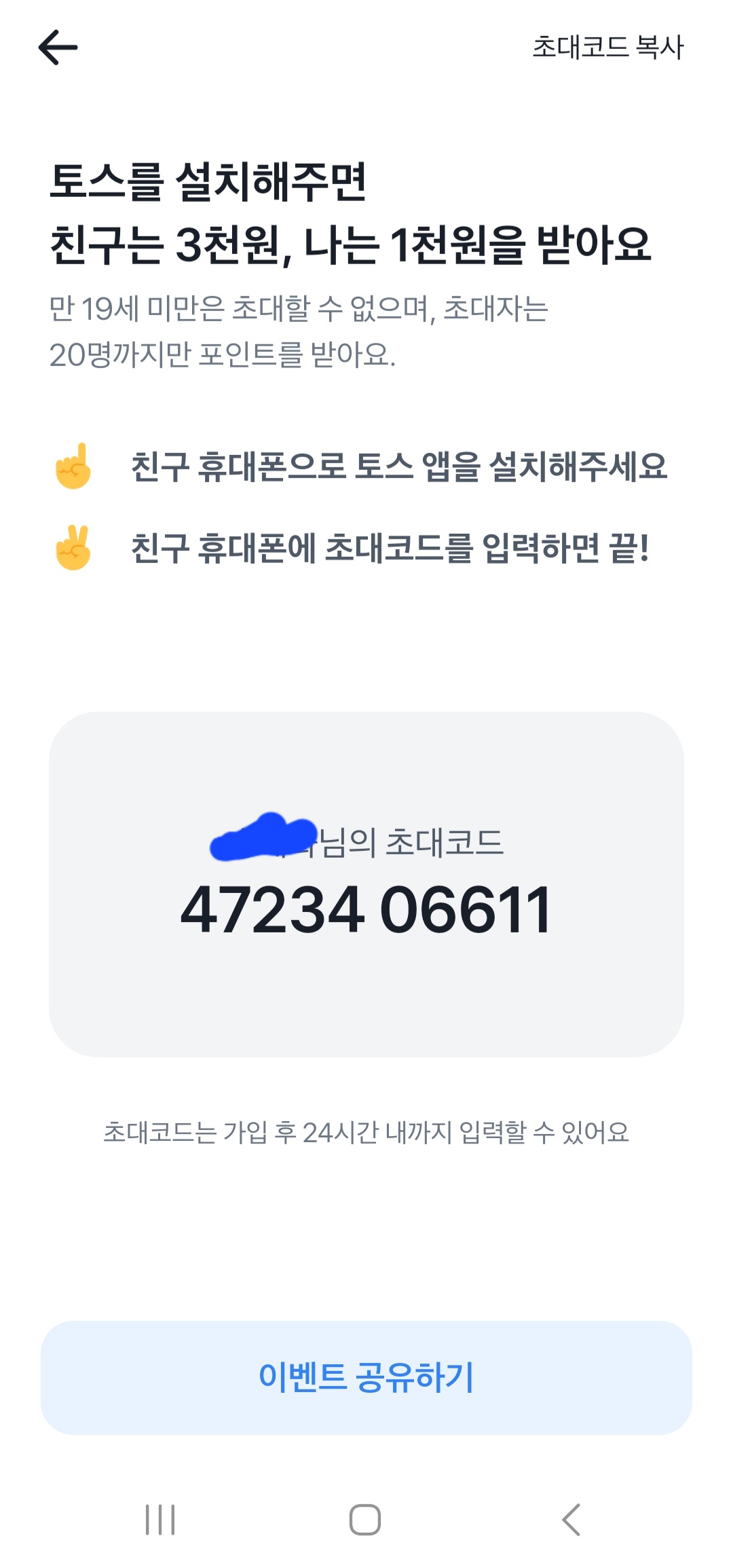 토스에 초대했어요.