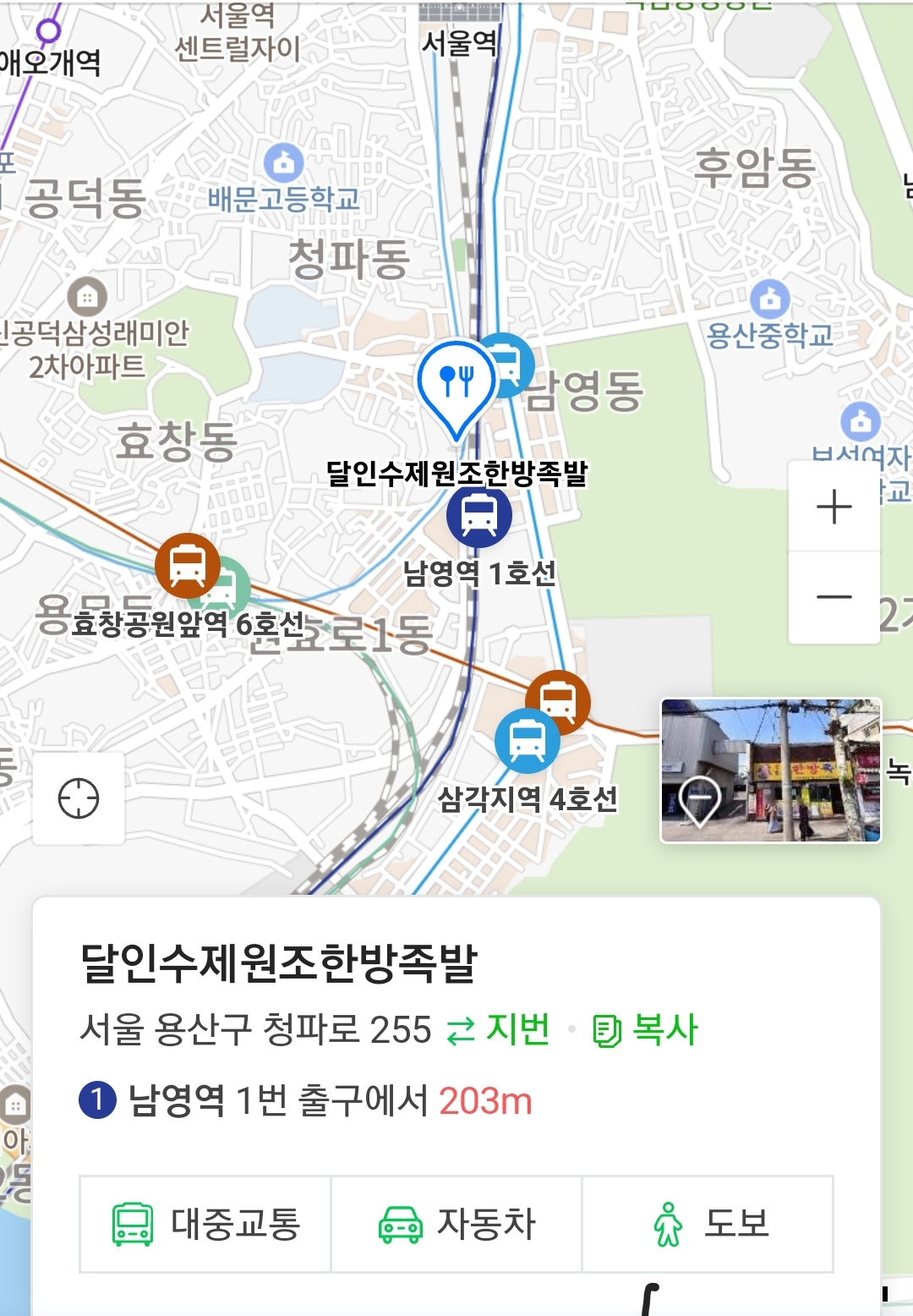 위치는 남영역/숙대입구역 사이입니다.