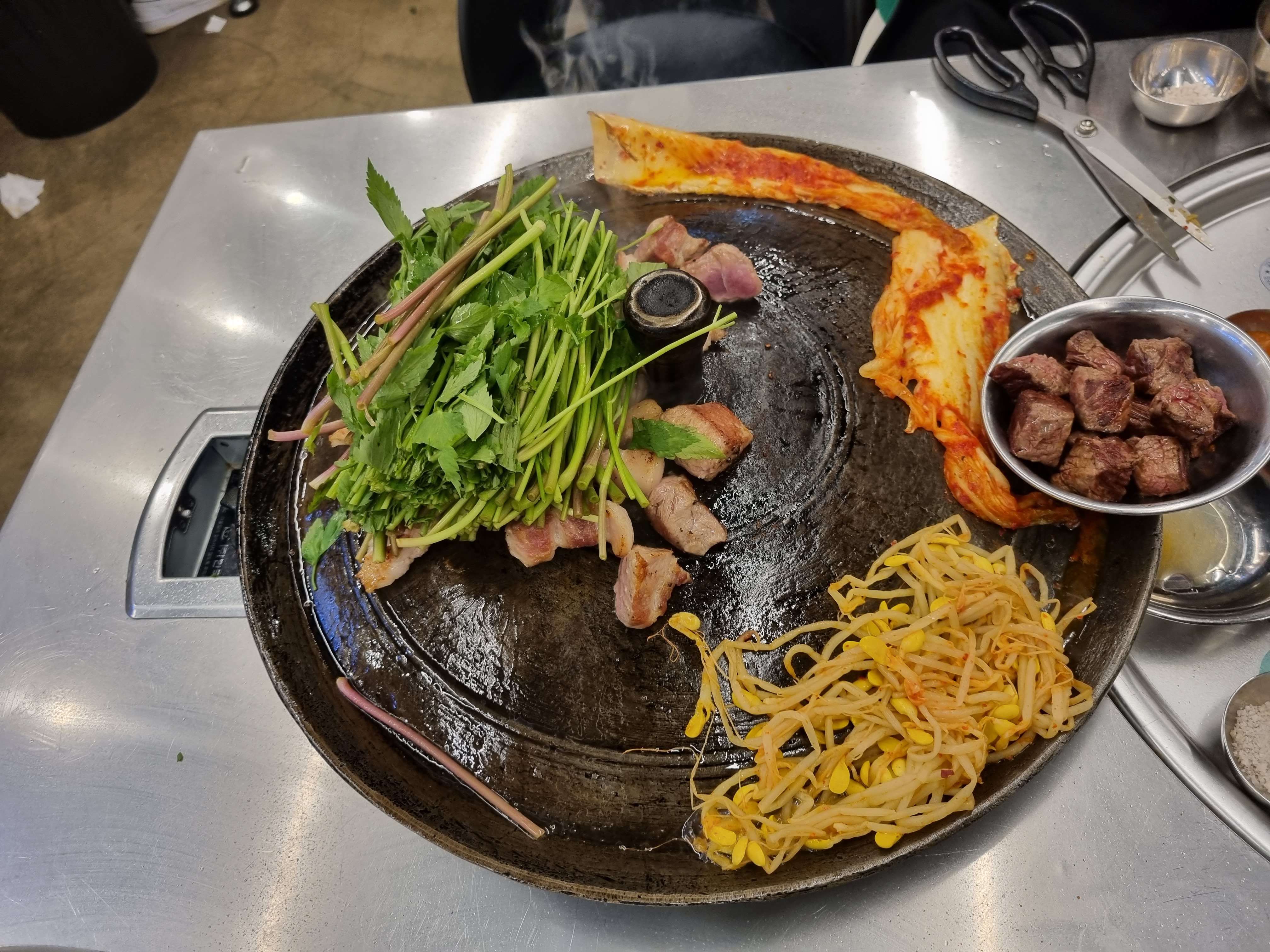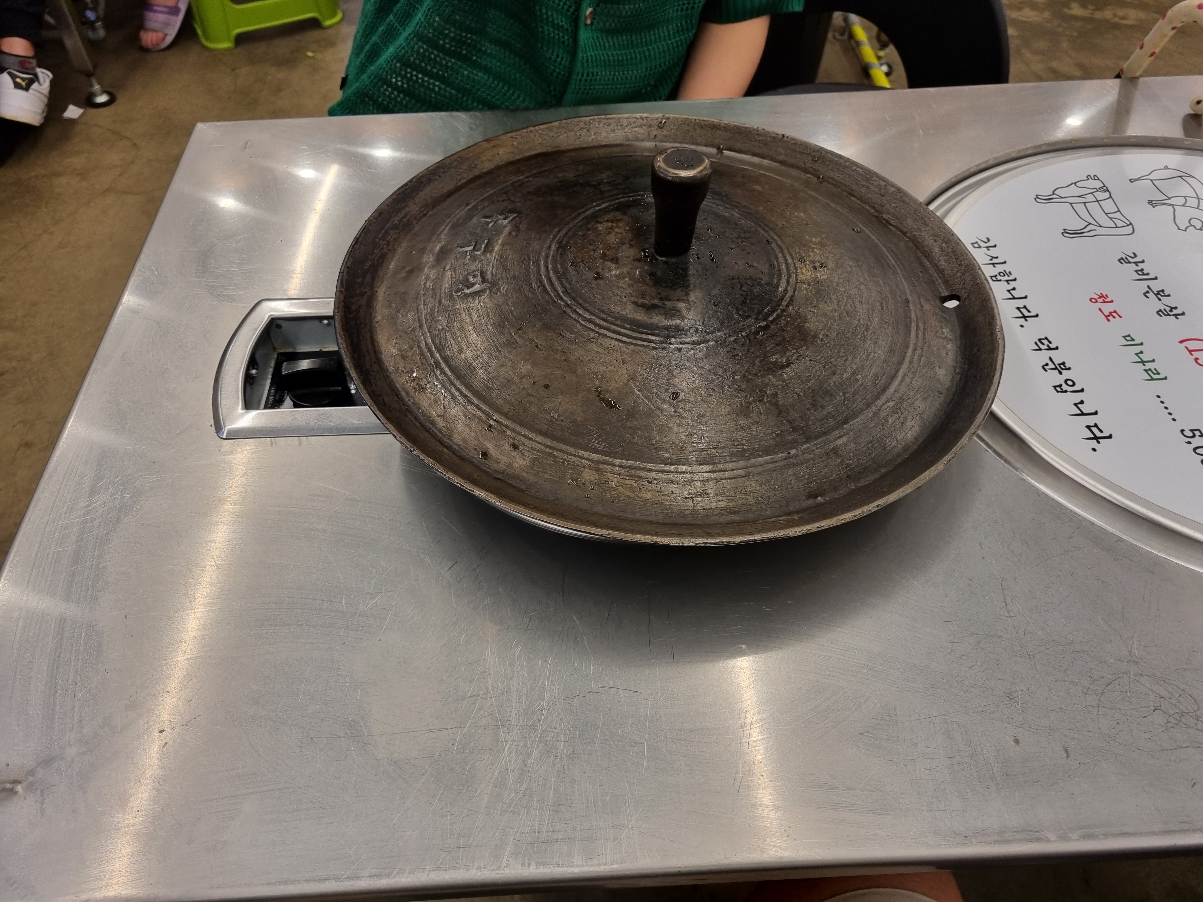 불판이 솥뚜껑입니다.