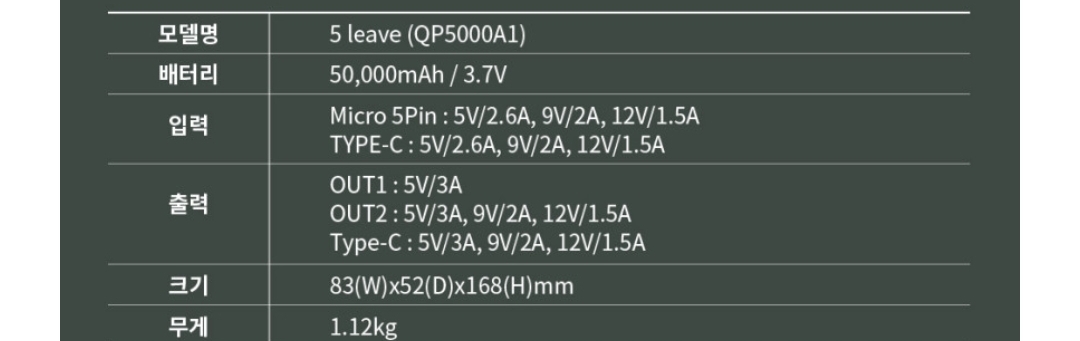 리큐엠 LED 캠핑 차박 고속충전 LCD 숫자 잔량표시 대용량 보조배터리 50000mAh
