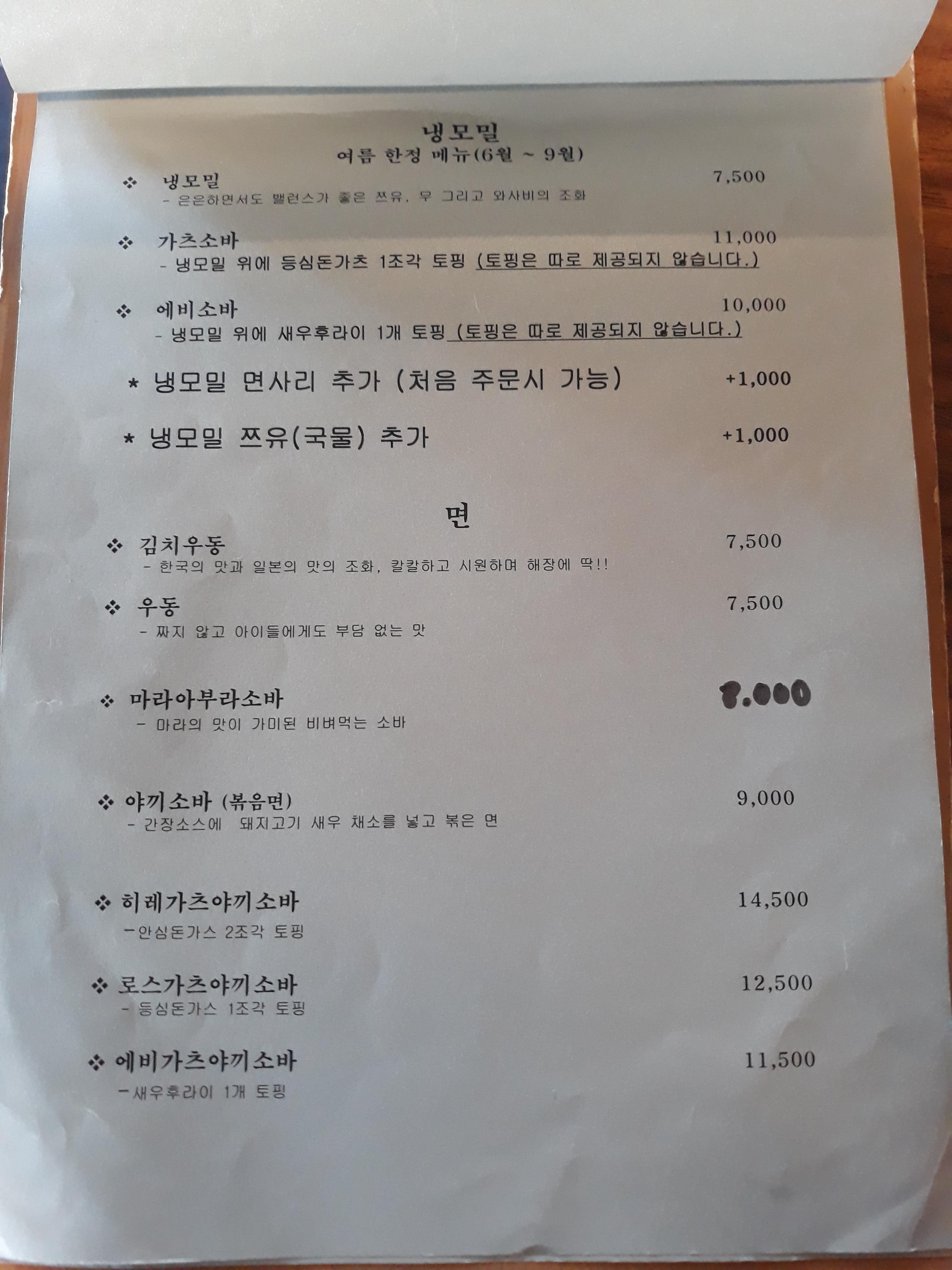 다음은 메뉴판입니다.