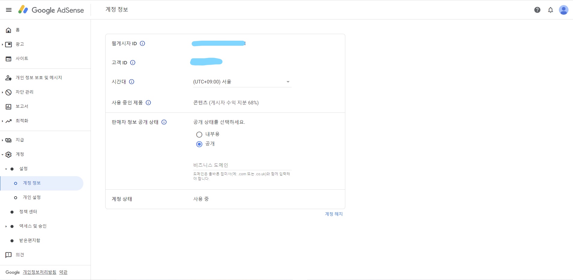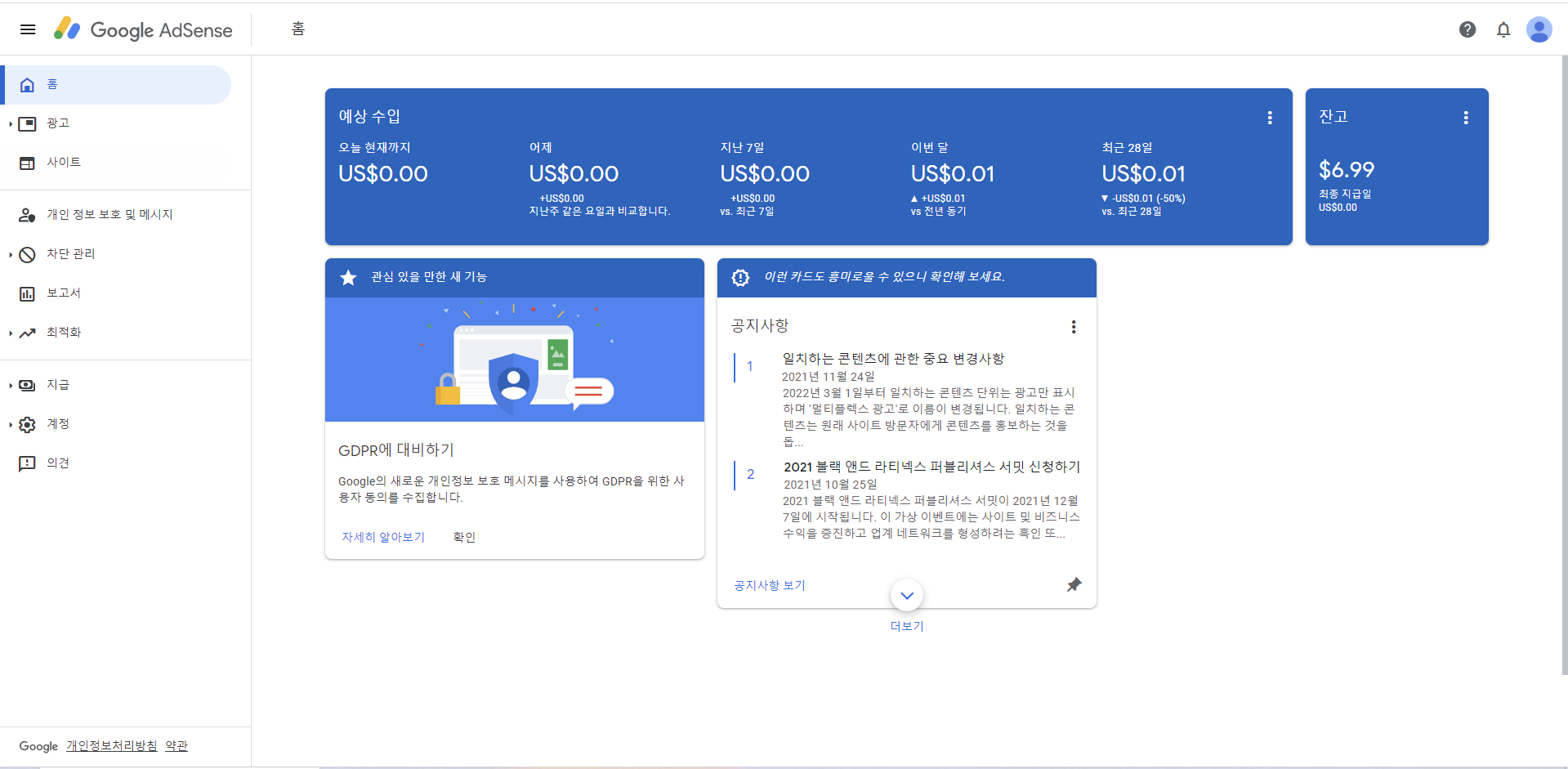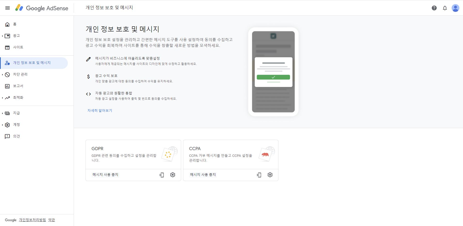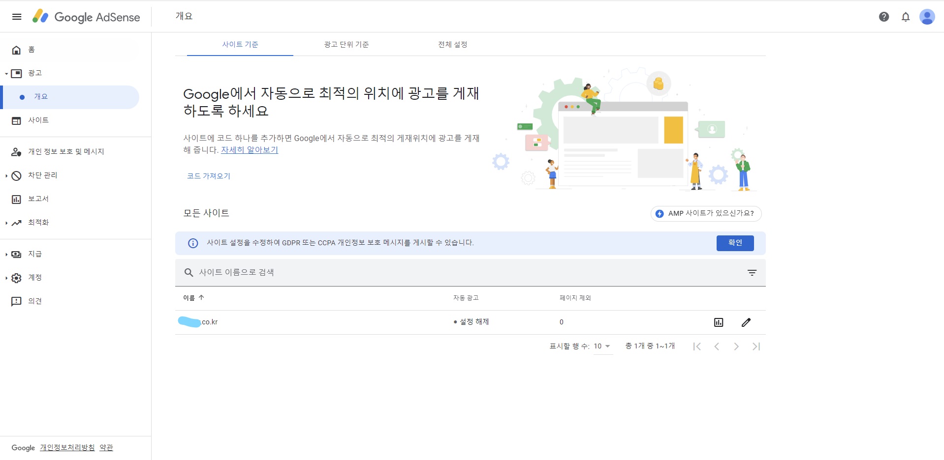 개요에는 구글 애드센스 연동 사이트 등록이 있습니다.